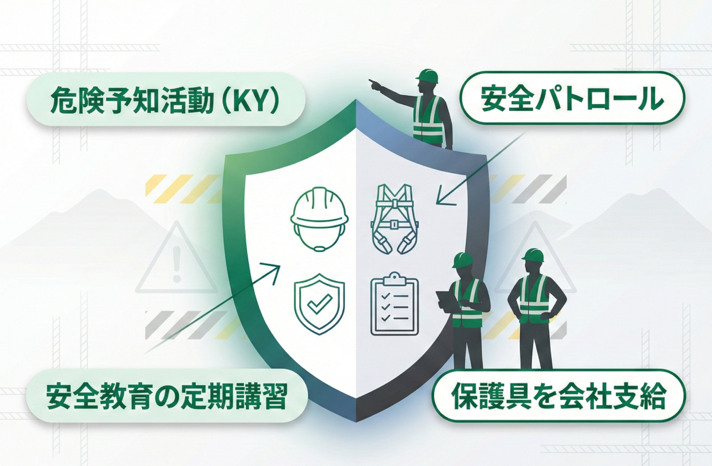 保護具支給:ヘルメット・安全帯・防寒着などを会社負担で提供