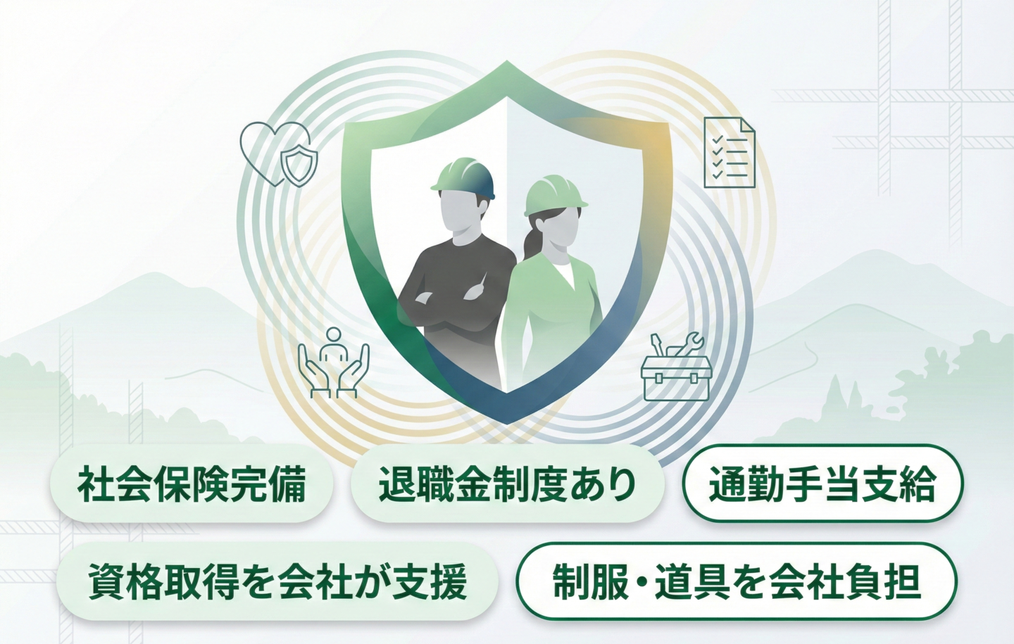 制服・道具支給:作業着・安全靴・工具類を会社負担