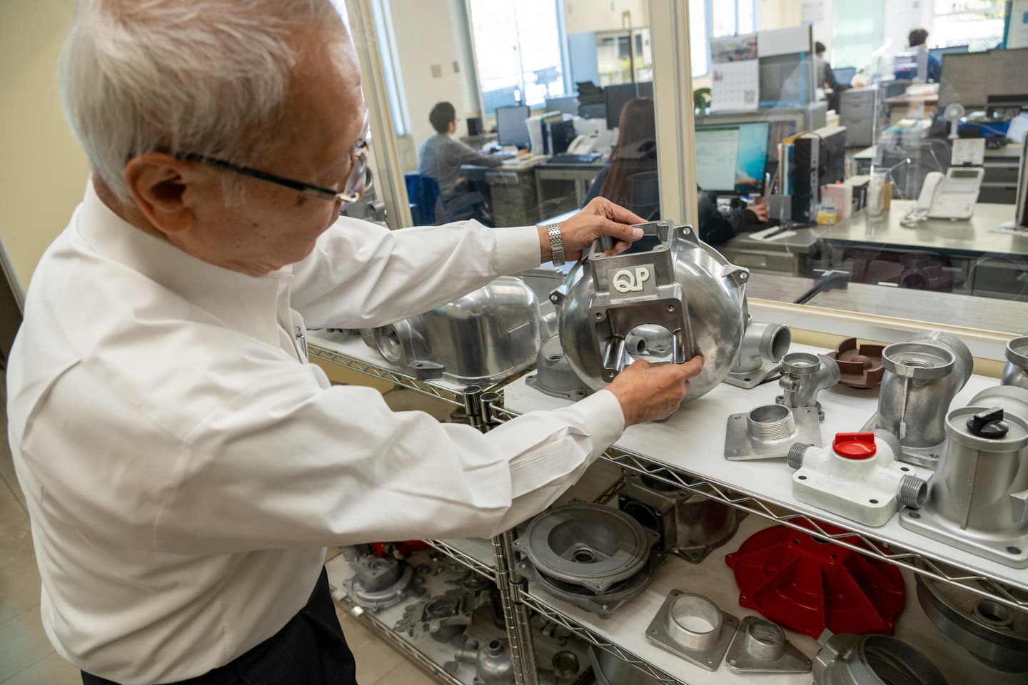 創業当初、社長や専務は営業や事務を担当しながら、夕方からはポンプの製造ラインに立ち、夜中まで働くこともありました。
